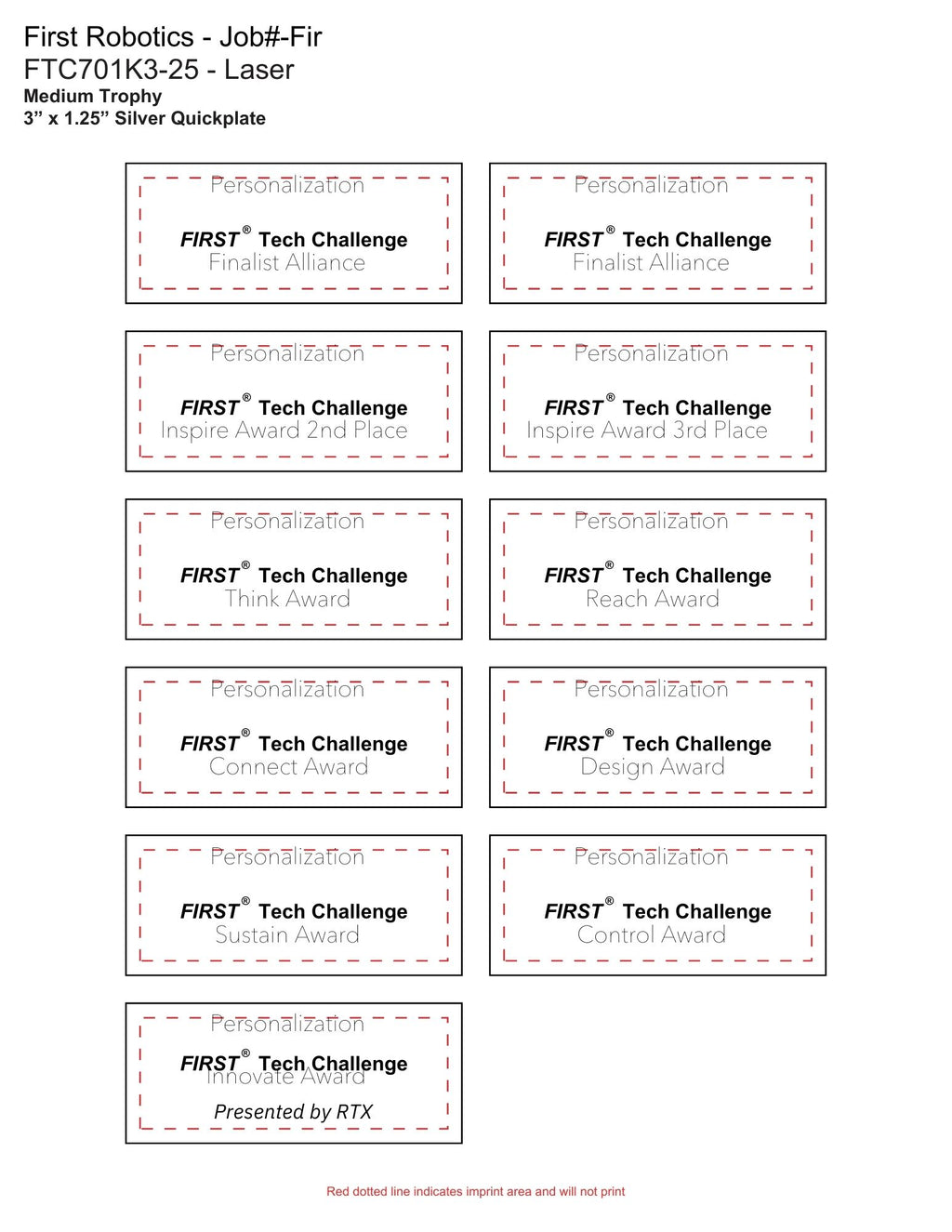 Designed for the largest league events and qualifiers, this 21+ Team Kit provides all the essential awards needed to recognize outstanding achievements in FIRST Tech Challenge competitions. With trophies, engraved plates, and medals, this kit ensures every team is recognized for their innovation, teamwork, and performance.