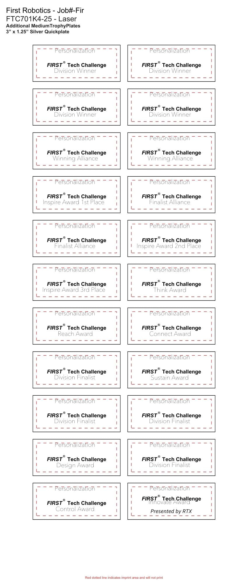 - Inspire Award Medals (required and included with trophy)